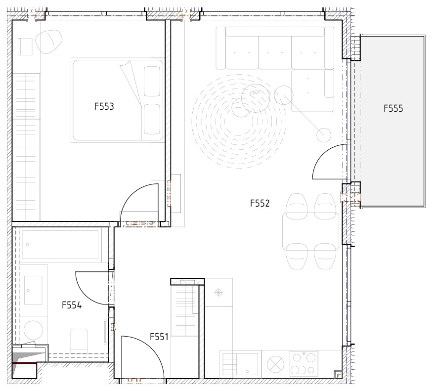 | F552 - Obýv. izba s kuch. kútom | 26,11 m² |